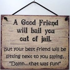 18. A good friend will come and bail you out of jail…but, a true friend will be sitting next to you saying, “Damn..that was fun!