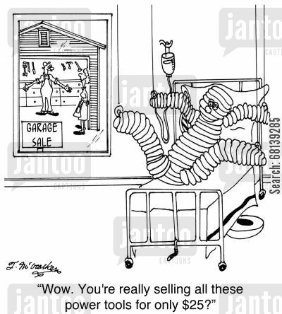 HAMMER: Originally employed as a weapon of war, the hammer nowadays is used as a kind of divining rod to locate the most expensive parts adjacent the object we are trying to hit. Also, very effective at fingernail removal.