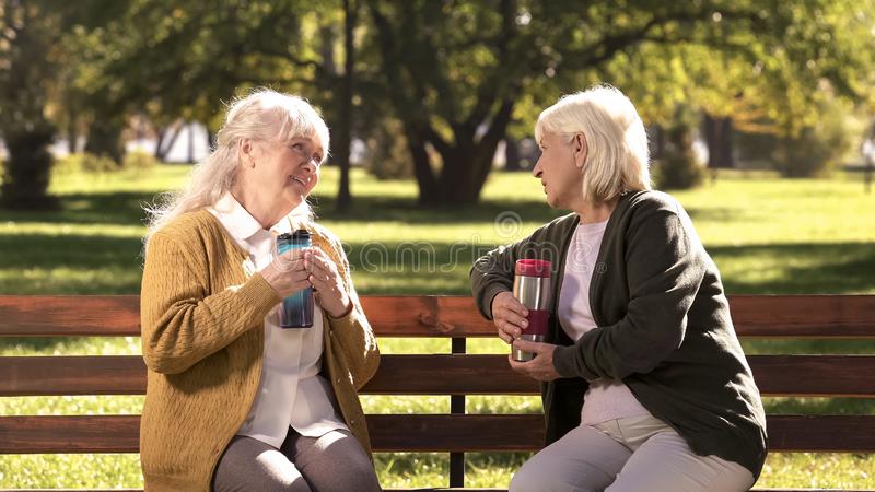 Two little old ladies, Connie and Jean, were sitting on a park