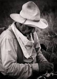 Old Coon River Mac, the cowboy from Beach, North Dakota, remained silent, slowly stirring the campfire coals with his pecker…