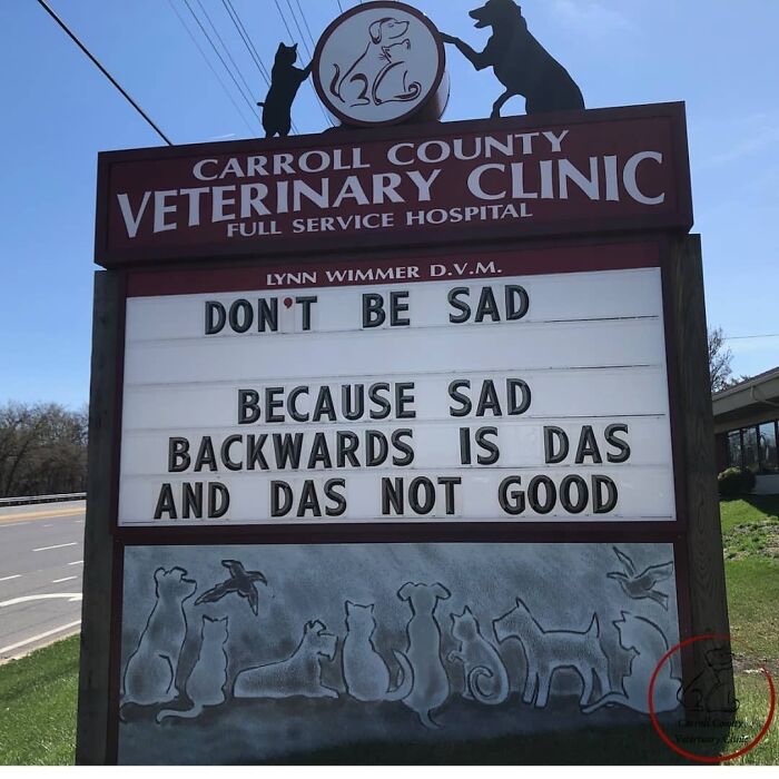 Day Brightener – Signs From The Carroll County Veterinary Clinic February 6, 2023February 6, 2023lorenberg Uncategorized Share this: Click to share on Facebook (Opens in new window) Facebook Click to share on Pocket (Opens in new window) Pocket Like Loading... Related