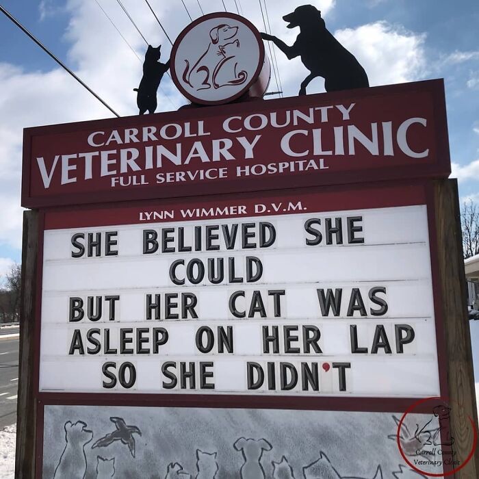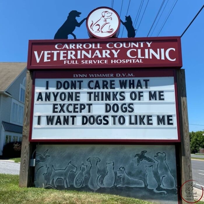 Day Brightener – More Great Signs From The Carroll County Veterinary Clinic February 7, 2023February 7, 2023lorenberg Uncategorized Share this: Click to share on Facebook (Opens in new window) Facebook Click to share on Pocket (Opens in new window) Pocket Like Loading... Related