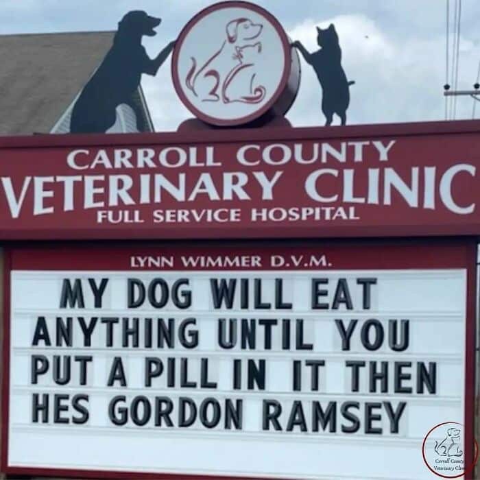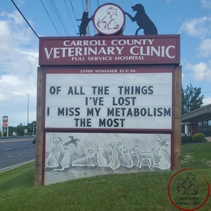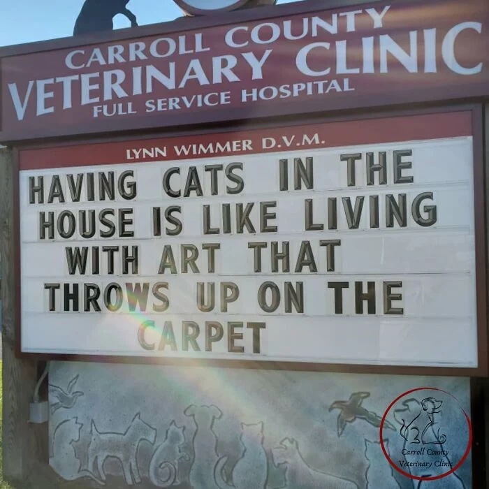 Day Brightener – More Great Signs From The Carroll County Veterinary Clinic November 13, 2023lorenberg Uncategorized Share this: Click to share on Facebook (Opens in new window) Facebook Click to share on Pocket (Opens in new window) Pocket Like Loading... Related