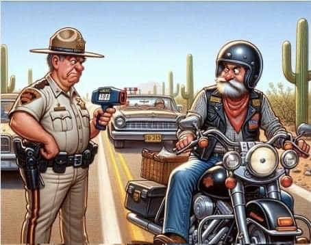 An Arizona Highway Patrol officer stops a Harley rider for traveling faster than the posted speed limit: