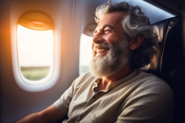 A young man and a senior citizen are sitting next to each other on a long international flight.