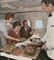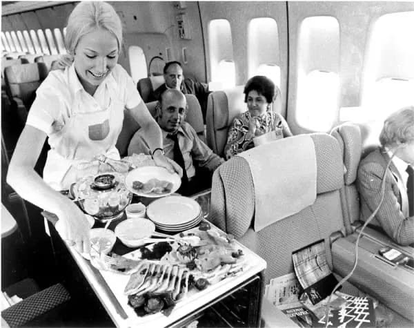 In the 1950s and 1960s, passengers could expect elaborate meals with multiple courses, such as caviar, lobster, and chateaubriand, served on fine china with silver cutlery.