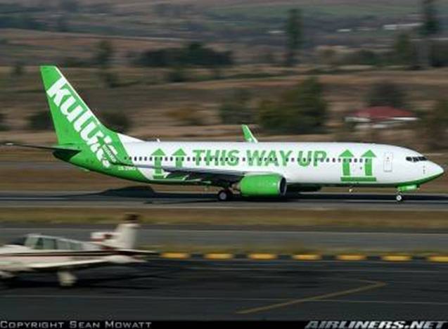 Kulula is a low-cost South-African airline that doesn’t take itself too seriously. Check out their new livery! And get a kick out of the comments at the end of the photos. Notice the labeling on the plane.