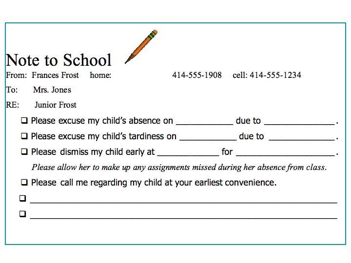 5. Please excuse Roland from p.e. for a few days. Yesterday he fell out of a tree and misplaced his hip.