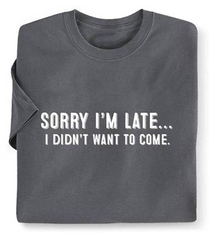 One morning one of the residents didn’t show up for breakfast so another guy’s wife went upstairs and knocked on his door to see if everything was OK. She could hear him through the door and he said that he was running late and would be down shortly so she went back to the dining area.