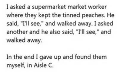 Without hesitating, the agent smiled and grabbed her public address microphone. “May I have your attention, please?”, she began, her voice heard clearly throughout the terminal. “We have a passenger here at Gate 14 WHO DOES NOT KNOW WHO HE IS. If anyone can help him with his identity, please come to Gate 14”.